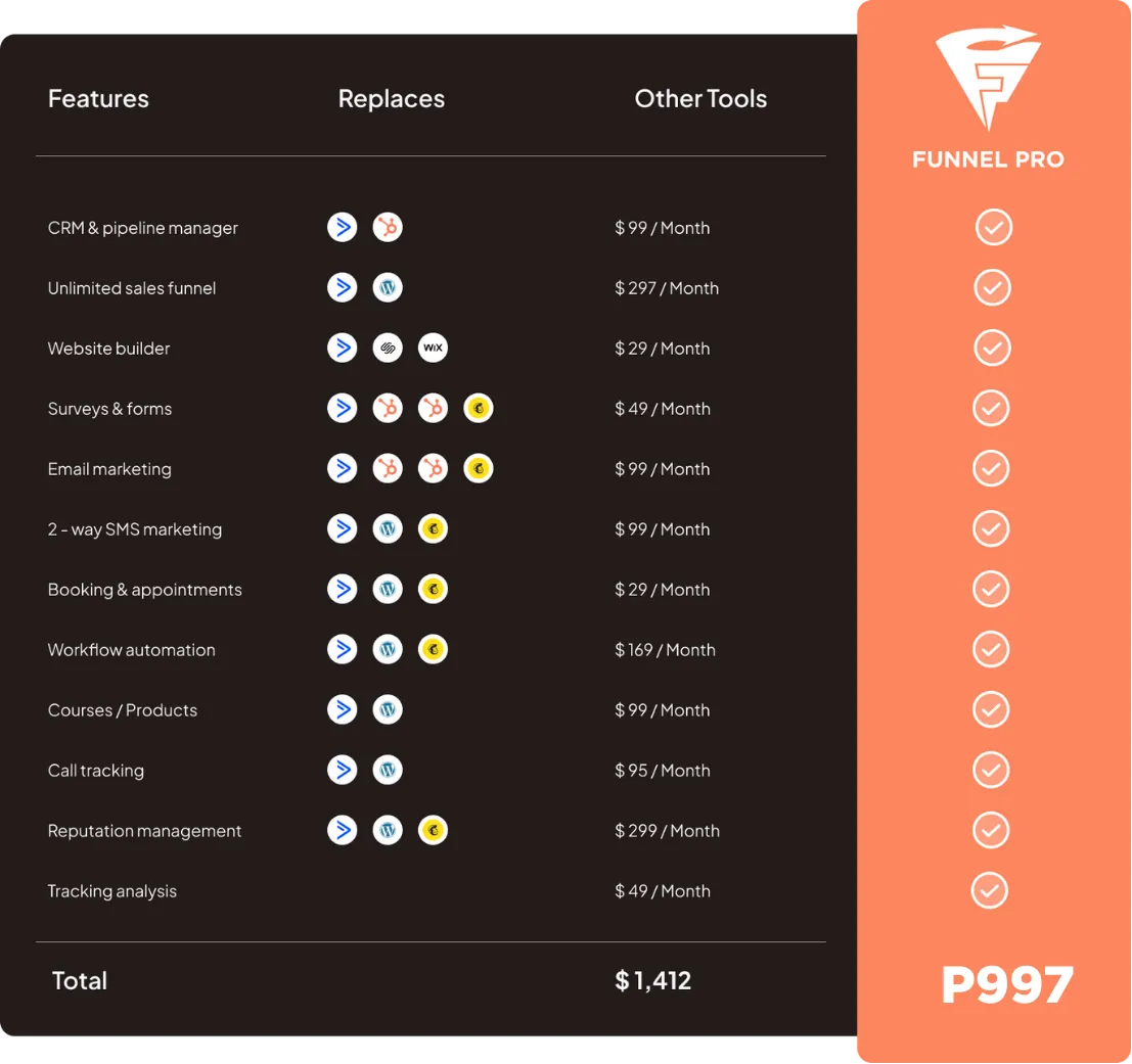 Funnel Pro combines the best features of multiple tools into one platform—saving you time, money, and effort.